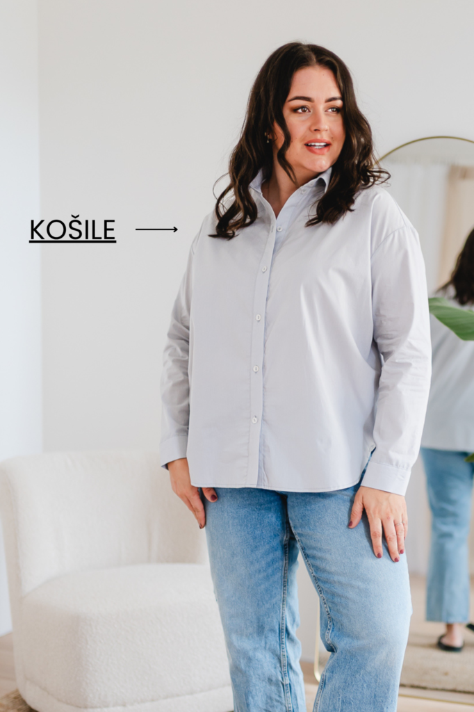 Dámská bavlněná košile POPLIN s řasením krátká šedá